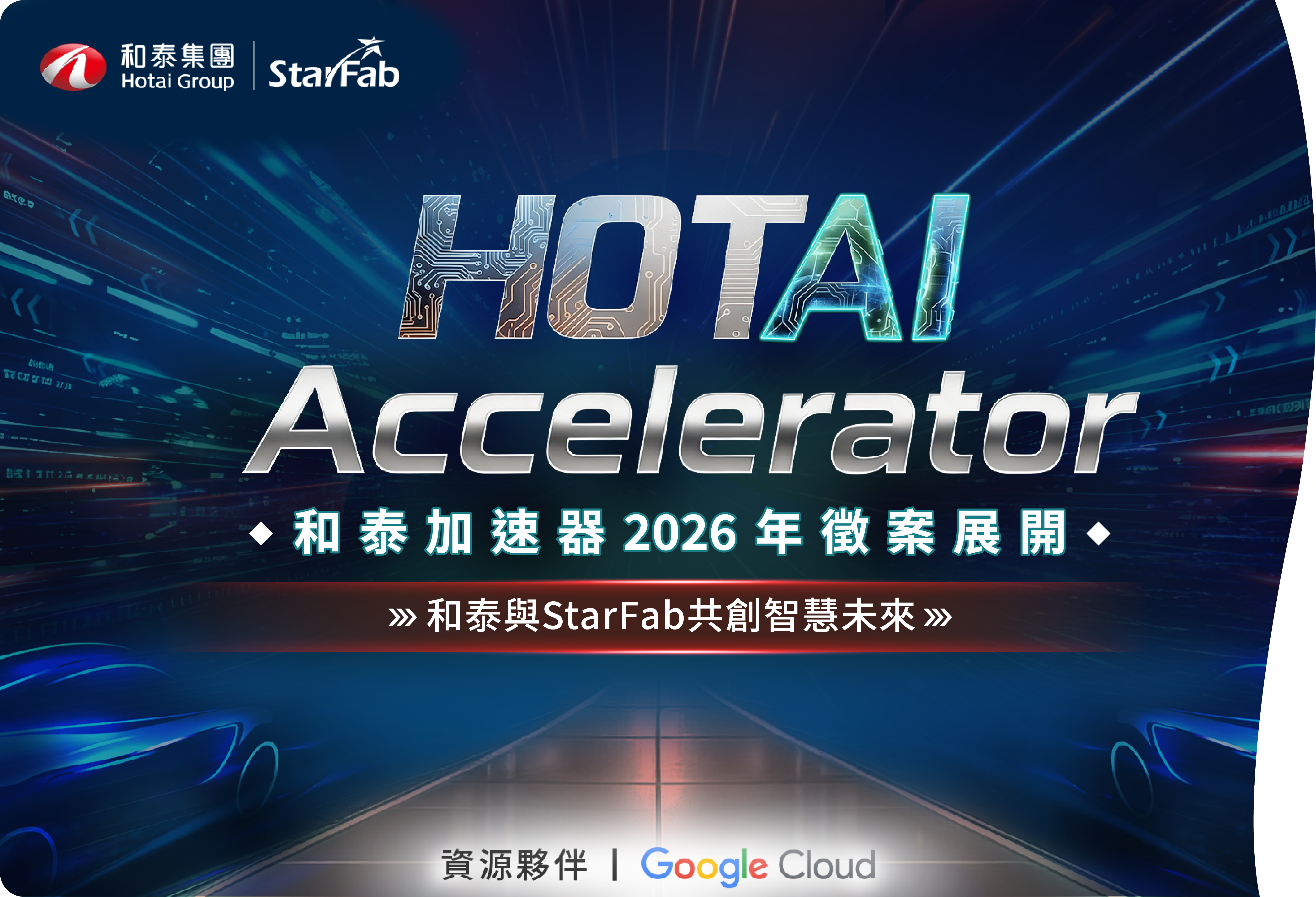 和泰集團與StarFab自2024年共同成立「和泰加速器」,本期徵案聚焦於三大主題:AI營運賦能、AI智慧決策,以及創新商模拓展,並深度串聯集團核心品牌與場域資源,涵蓋TOYOTA、LEXUS及HINO等。入選加速器的新創團隊,將有機會參與和泰集團的場域驗證、探索共同商業合作契機,以及將被推薦申請 Google for Startups Cloud 計畫,享有雲端點數、技術培訓及精選資源。